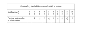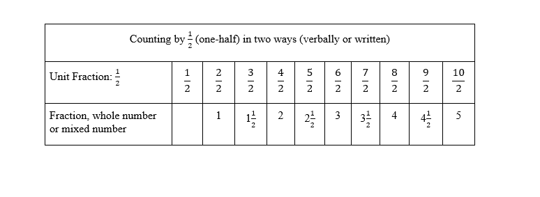 In 3rd grade, formal math instruction of fractions begins. Students learn to work with unit fractions using visual models – such as fraction tiles, number lines, and area models – to represent fractional values and relationships.